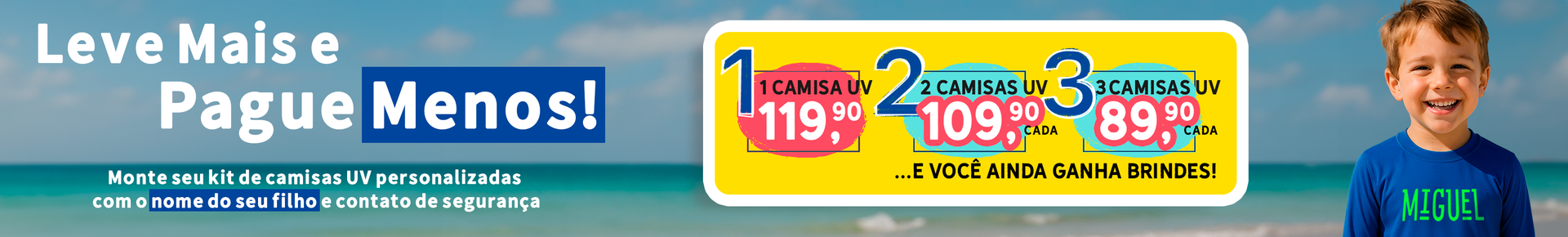Camisa UV Branca Personalizada - De 0 a 16 Anos